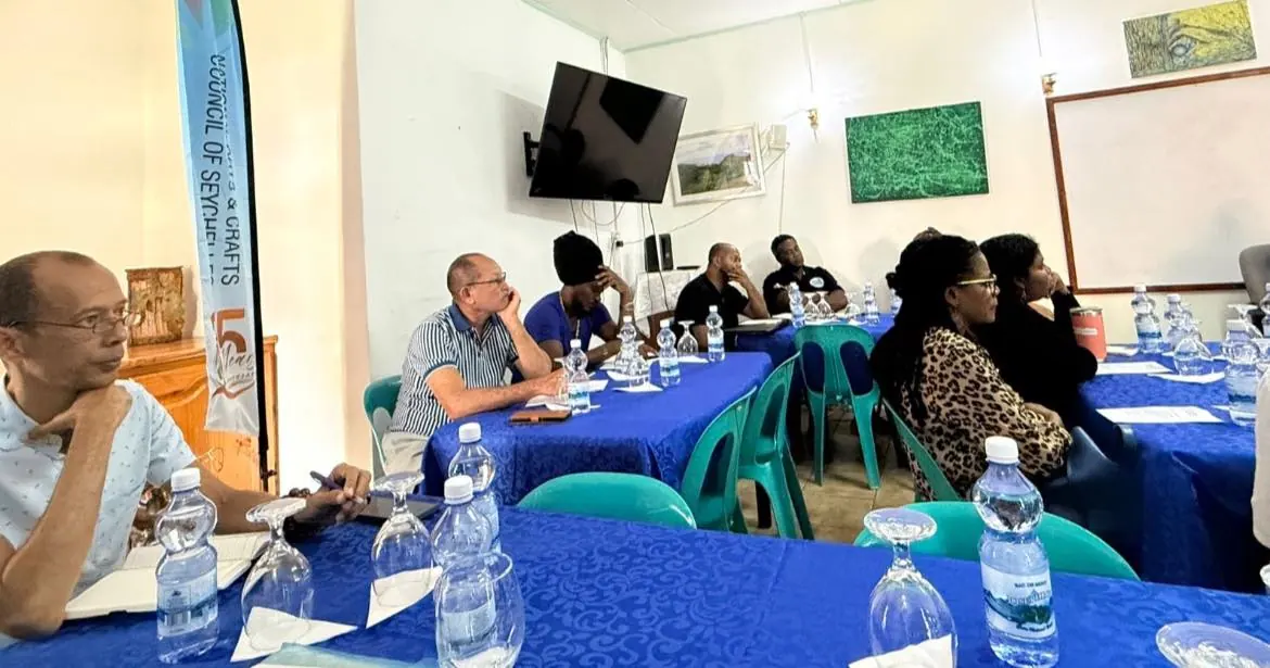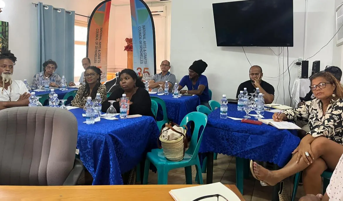 Representatives from the active associations, including Unique Foundation, Fashion, Bling Bling Association, Komik Lokal, GAS, Corperative des Artisans, Praslin Artisans Association, and Fondasyon Kiltirel Seselwa.