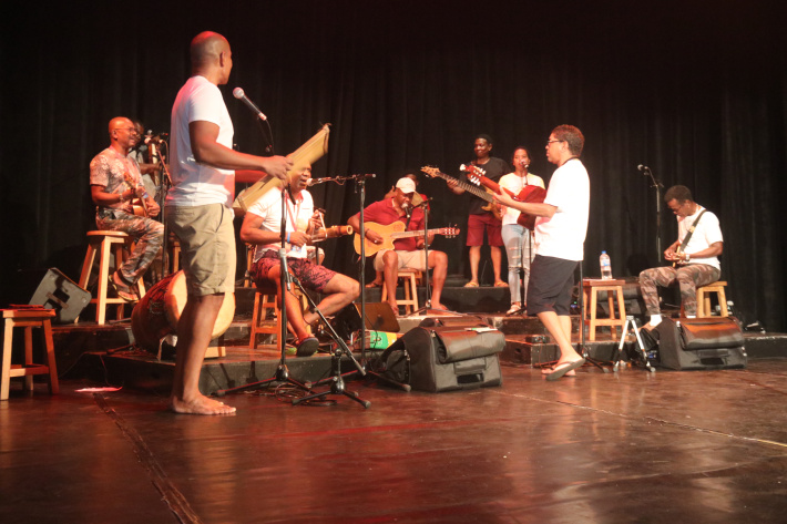 Rajery (Madagaskar) : “Je joue un instrument traditionnel qui s’appelle le valiha et c’est un instrument traditionnel et a 18 cordes. Pour moi cette activité de co-création est très important car nous partageons la même histoire. C’est un honneur et une opportunité pour Madagascar de participer à cette co-création. Nous essayons de transmettre des messages forts et les rencontres entre les pays créoles apportent toujours quelque chose d’intéressant.”