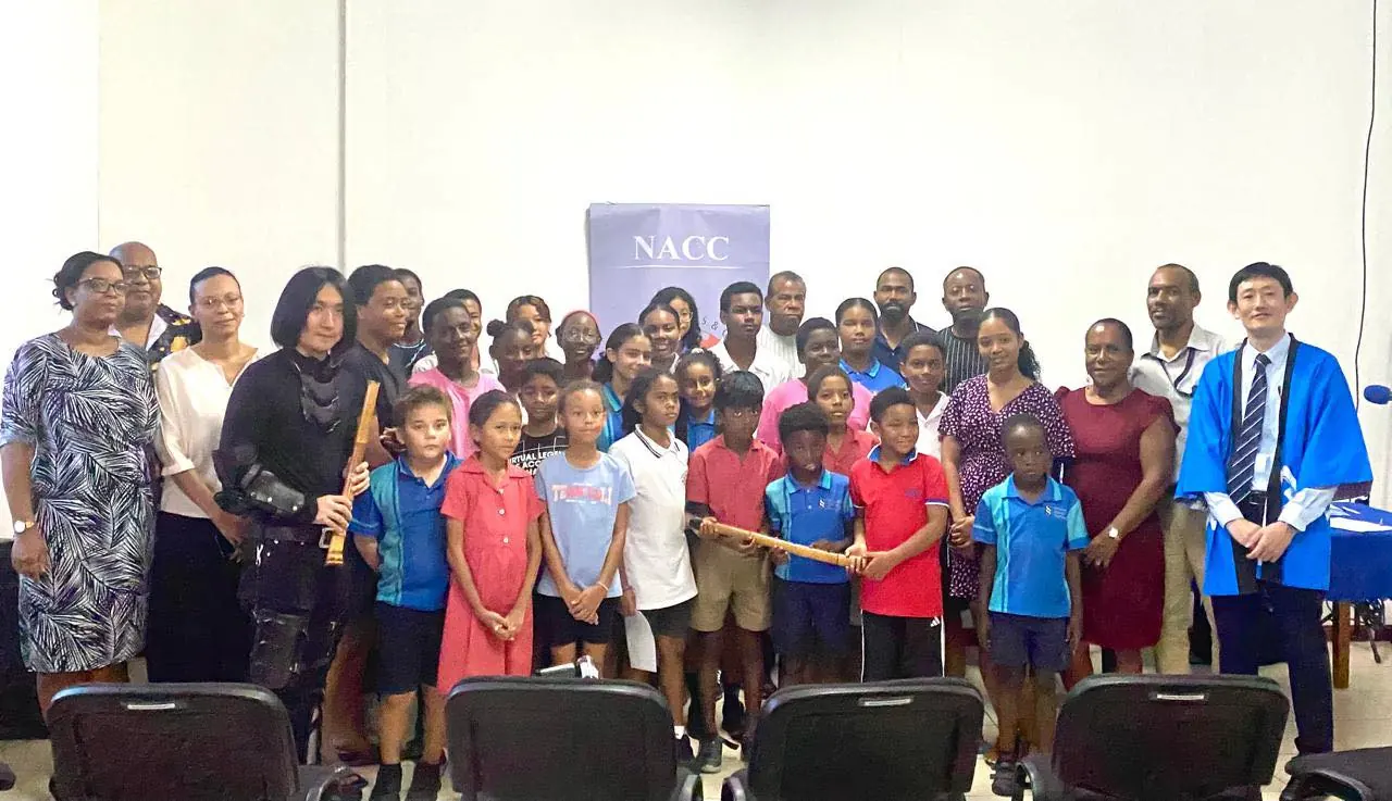 Organized jointly by the Ministry of Tourism and Culture and the Embassy of Japan in Seychelles, the one-hour workshop offered students a unique opportunity to experience both traditional and modern Japanese music through the evocative sounds of the shakuhachi.