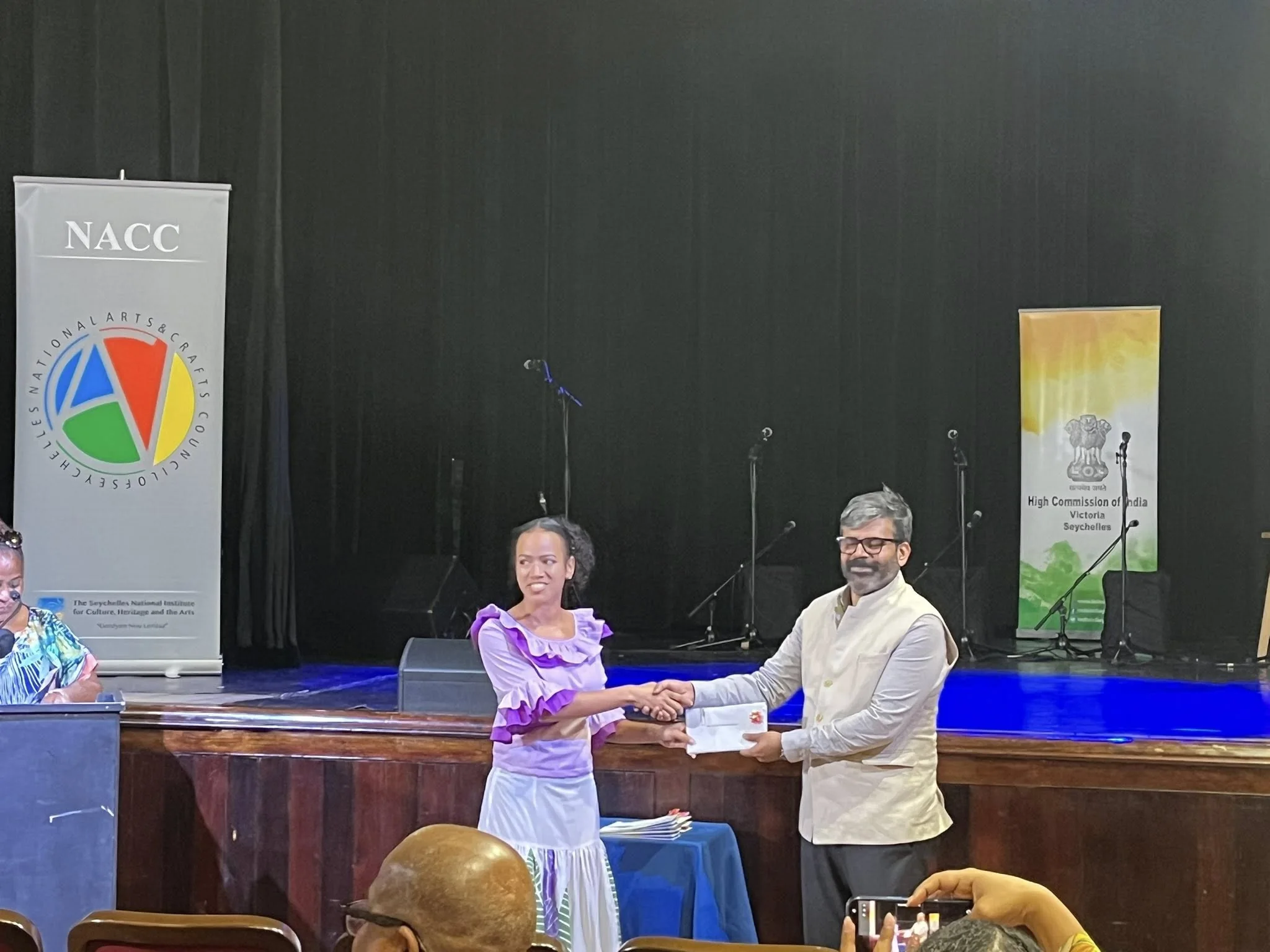 Present was the Minister for Tourism and Culture, Mrs Amanda Bernstein, the High Commissioner of India, Mr Rohit Rathish, Executive Director for NACC Mr Jimmy Savy, Management Staff of NACC, Artisans and Performers.